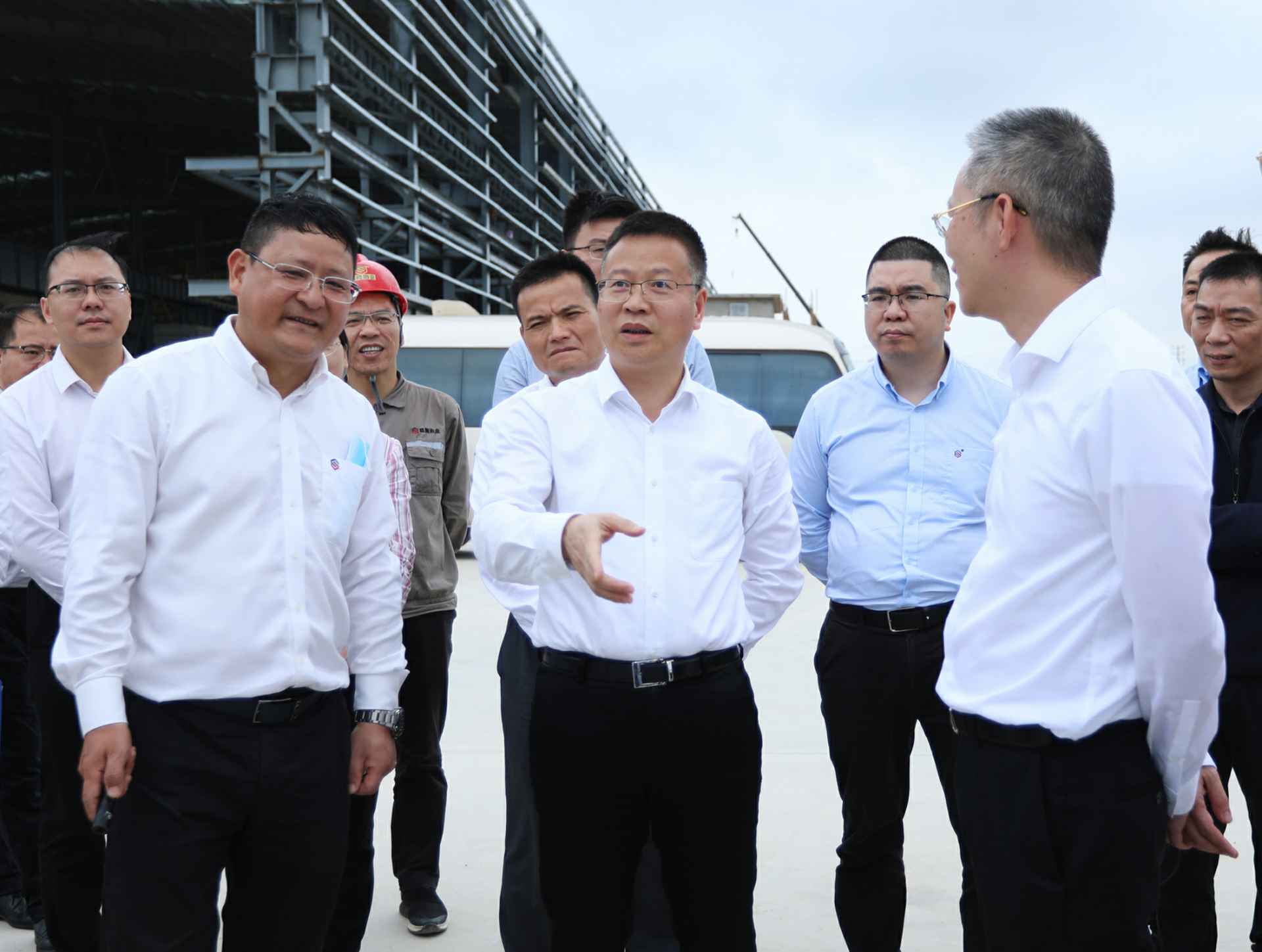 4月12日下午,市委书记谭丕创深入港口区,就推进重大项目建设进行专题调研。图为谭丕创在亚搏-亚搏(中国)一站式服务官方网站下游产业链——高强度耐磨新材料项目部现场调研。